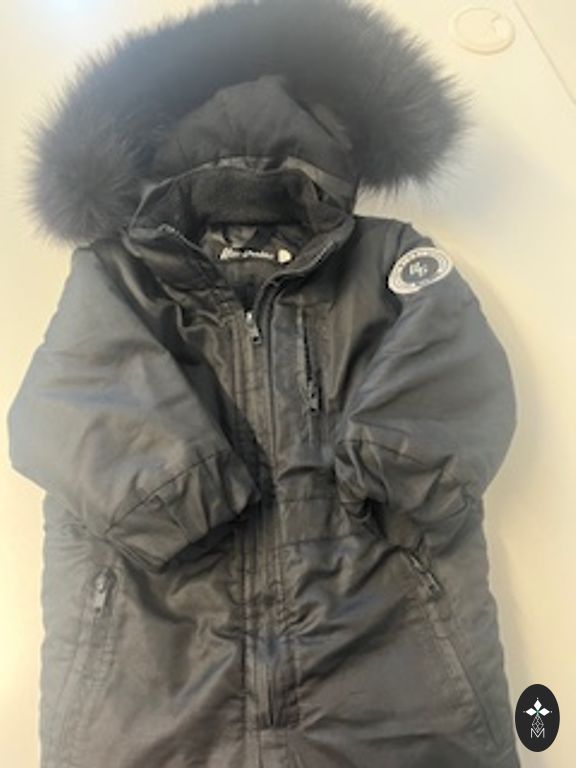 Very beautiful, white, soft and warm snowsuit for babies for cold weather. With removable mittens. New condition.
