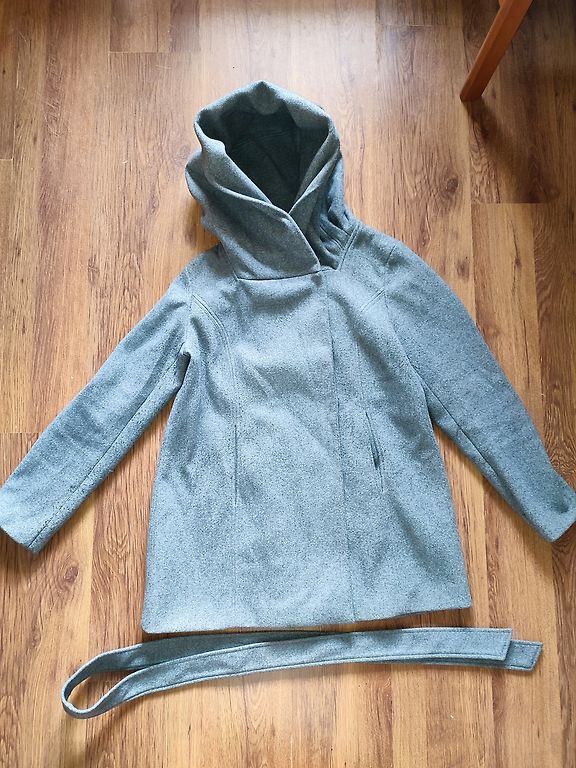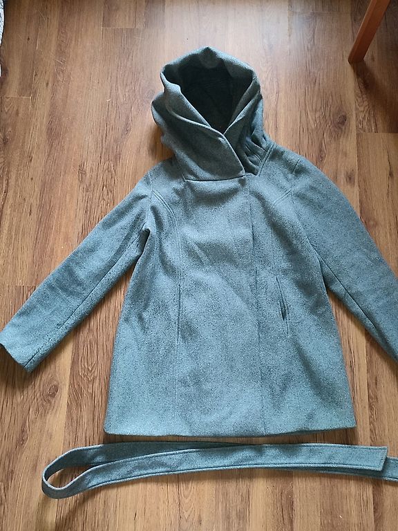 Uus, ainult silt on eemaldatud. Tume roheline talvemantel tõmblukuga. Küljetaskud tõmblukuga.
