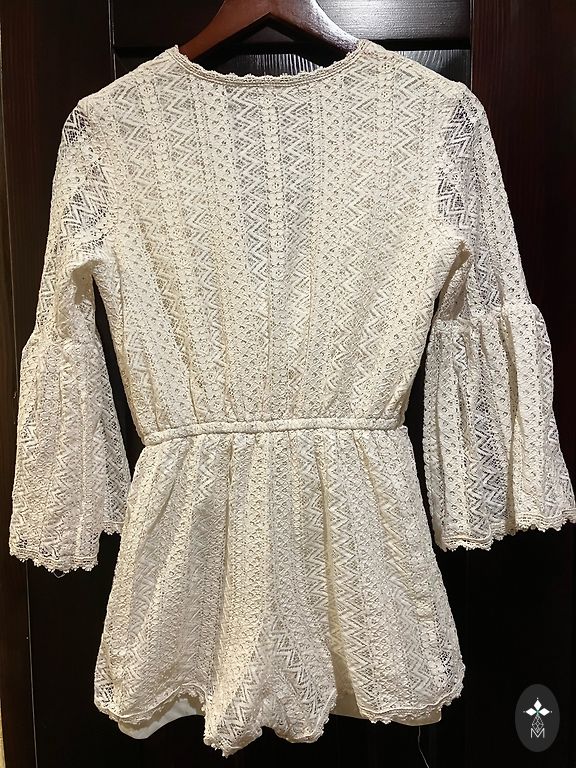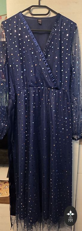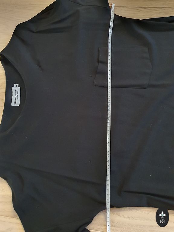 The dress with a belt can be worn with or without the belt; when worn, it looks like a skirt with a blouse. Bust: 52 cm, waist: 47 cm, length: 99 cm, shoulders: 39 cm.