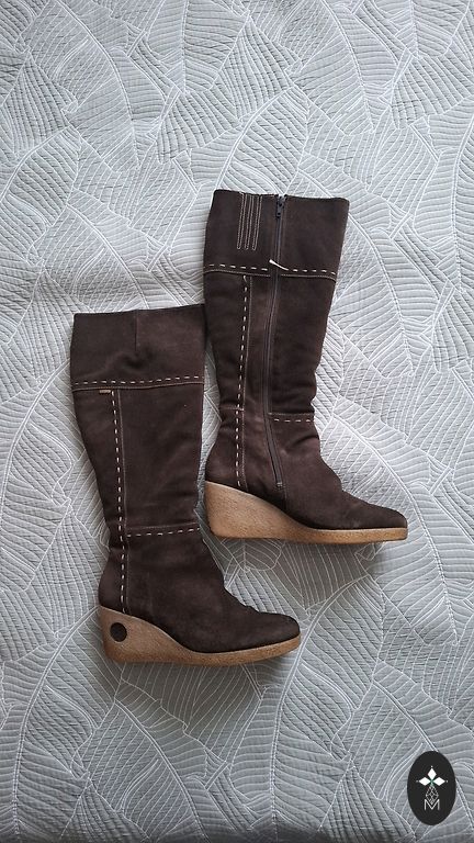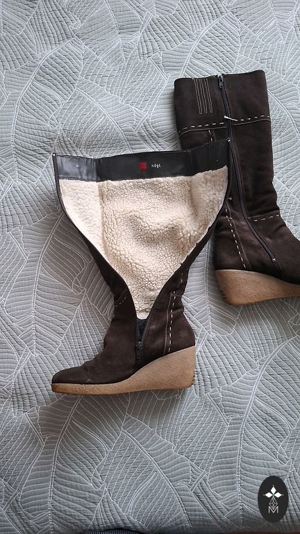 Замшевые сапожки с искусственным мехом носила 2 сезона размер 39