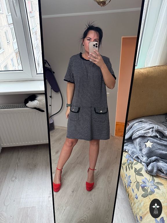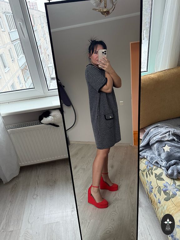 Raiba kleita ar šķēlumu aizmugurē.