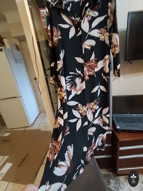 Soft half-wool dress. Custom-made. There won't be another like it. Chest width 102-104, length 105, cut at the waist, skirt bottom with overlap, sleeves are half-length, gathered at the ends.
