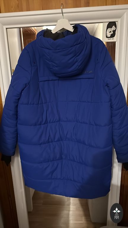 Veidi kasutatud, kuid ebaõnnestunult. Defektid: Foto 3 – kriimustus esiküljel, kuid kandes peaaegu märkamatu, kuna materjal on kergelt läikiv; Foto 4 – tõmbluku jäljed, mis on märkamatu, kui jope on suletud, kuna need asuvad siseküljel.