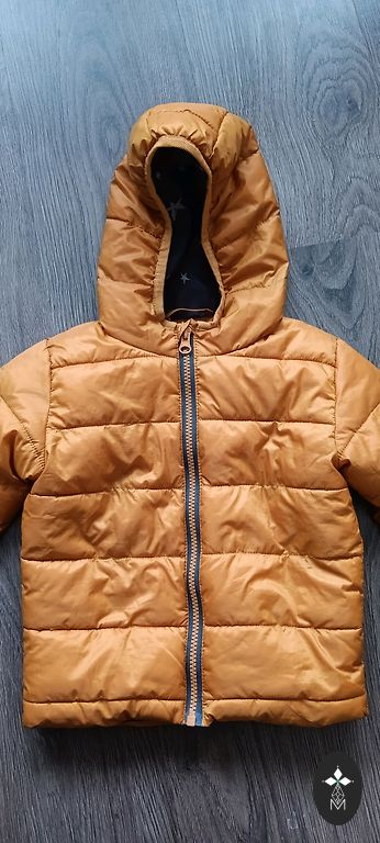 Jakk on väga heas seisukorras, paks, kuid väga kerge, meeldivalt ere, rõõmsameelne lapsele. Kapuuts on nööbitav. Suurus 84-86.