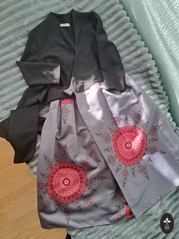 Dress with lining, bust 85-90 cm, hips 95 cm, length 88 cm. Size indicated is 40, with a small cutout on the back. Measurement is not available, sending.