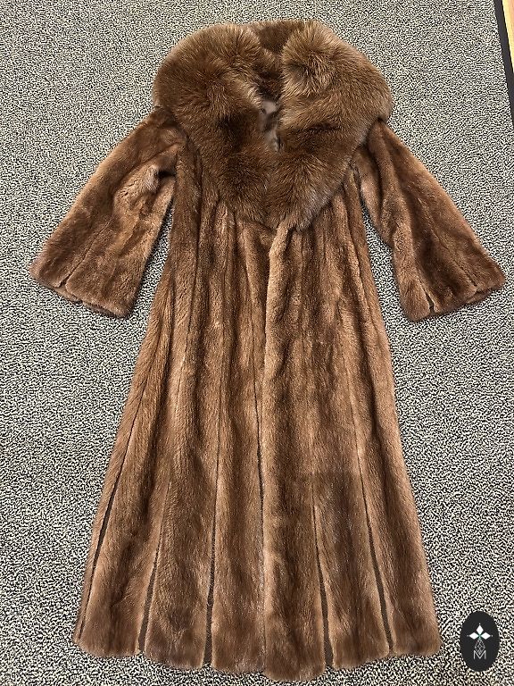 Karusnahkne kasukas koos nutriast salliga, trapetsikujuline. Uue seisukorras, ei ole kantud. Pikkus 125 cm, rinnaümbermõõt 120 cm, varruka pikkus kraest 80 cm, laius alt 200 cm.