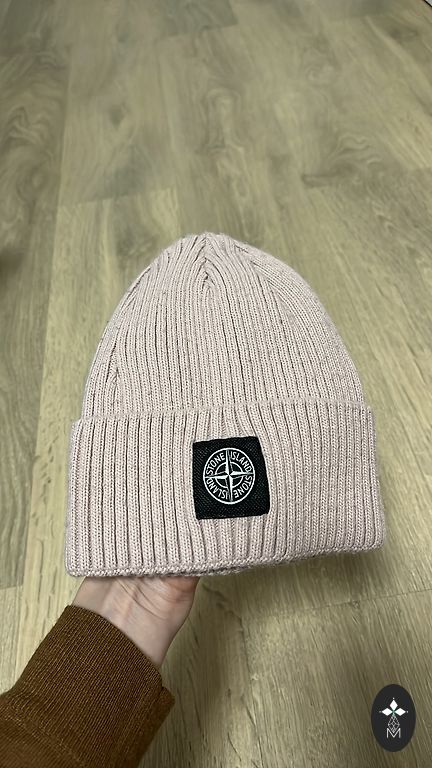 Светло-розовая (почти белая), немного пушистая бини шапка. Очень теплая. Выглядит совсем новой.