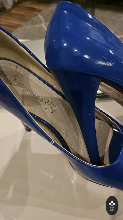 39.izmērs. Kreisajai kurpes aizmugurē maziņš trukumiņš.